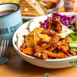 The English Muffin Bacon Bacon with Avocat, Oeuf, Cream Cheese, and sauce Cheddar was a savory delight that left me craving more. The combination of flavors was perfectly balanced, creating a mouthwatering experience with each bite.